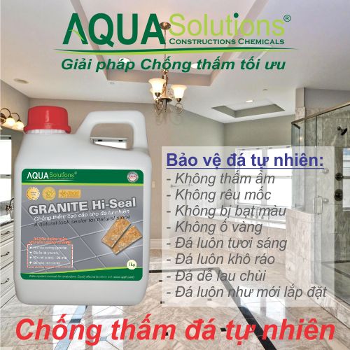 Chống thấm đá tự nhiên GRANITE Hi-Seal chuyên chống thấm cho các loại đá tự nhiên dùng trong trang trí & xây dựng. Một số ứng dụng xử lý kháng nước tiêu biểu, như: