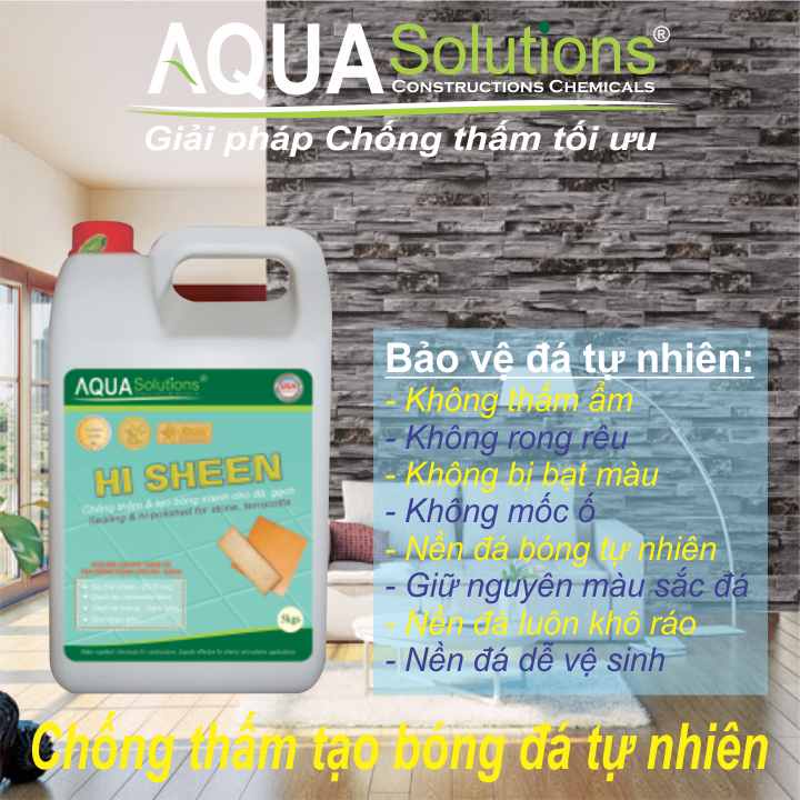 Chống thấm tạo bóng cao Hi SHEEN chuyên dùng chống thấm tạo bóng mạnh & tăng độ cứng cho bề mặt của các loại vật liệu đất nung, đá trang trí có mặt nhám. Các ứng dụng tiêu biểu cho vật liệu như: